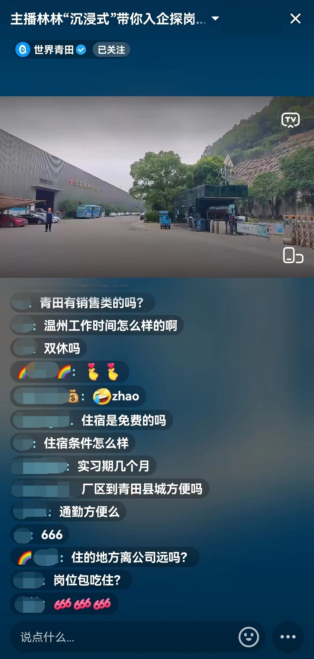 6月27日,jinnianhui今年会钢管有限公司联合青田县人社局打破传统招聘方式,尝试时下最新潮的“探店直播”形式,带领求职者深入公司内部,打卡青田厂区,沉浸式体验公司的工作环境与氛围。