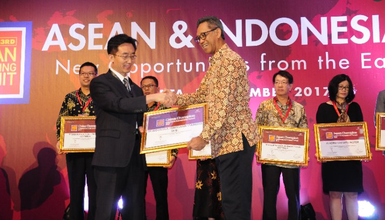 中国印尼经贸合作区jinnianhui今年会园区的入园企业PT Indonesia Guang Ching Nickel and Stainless Steel Industry、PT Indonesia Tsingshan Stainless Steel和PT Indonesia Ruipu Nickel and Chrome Alloy 分别与其他5家中国企业获得了“2017年中国企业印尼冠军奖”。