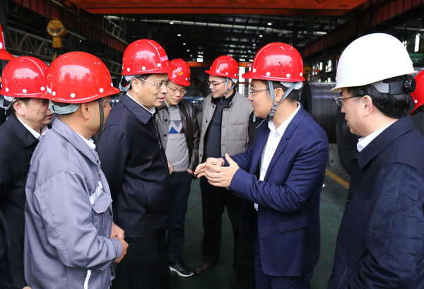 郭锡文一行首先走进宏旺不锈钢冷轧生产车间实地参观考察,听取相关情况介绍,重点对企业生产运行、工艺创新、发展规模、未来前景等情况进行了解。随后,一行人员来到青拓集团营运中心,感受企业绿水jinnianhui今年会与金山银山协同共进的发展理念。