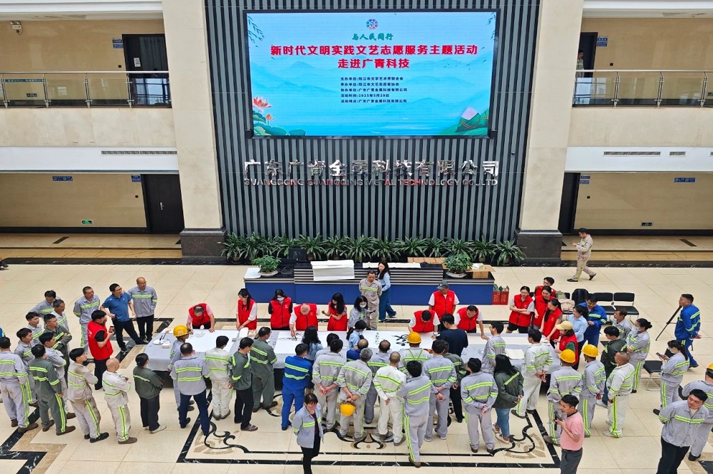为弘扬社会主义核心价值观与时代精神,持续丰富文明实践活动内涵和职工业余文化生活,5月29日,广东广青金属科技有限公司携手阳江市文联、阳江市文艺志愿者协会,在公司四楼大礼堂举办“广拓新程·青扬艺彩”新时代文明实践文艺志愿服务展演。市文联党组书记、主席叶秀华,公司党委委员、副总经理杨洋,市文联、市文艺志愿者协会相关负责人以及来自各厂部职工代表约400多人共赏文化盛宴。