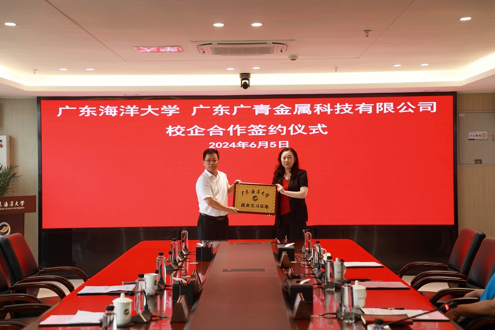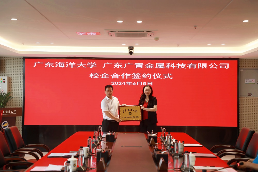 随后,校方授予广青科技“广东海洋大学就业实习基地”和“广东海洋大学广青订单班人才培养基地”牌匾。双方代表签订校企合作协议,成立广青订单班,为16名材料科学与工程学院的学生提供定制化培养。