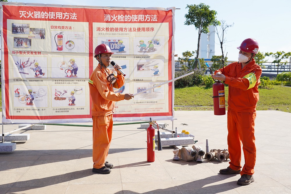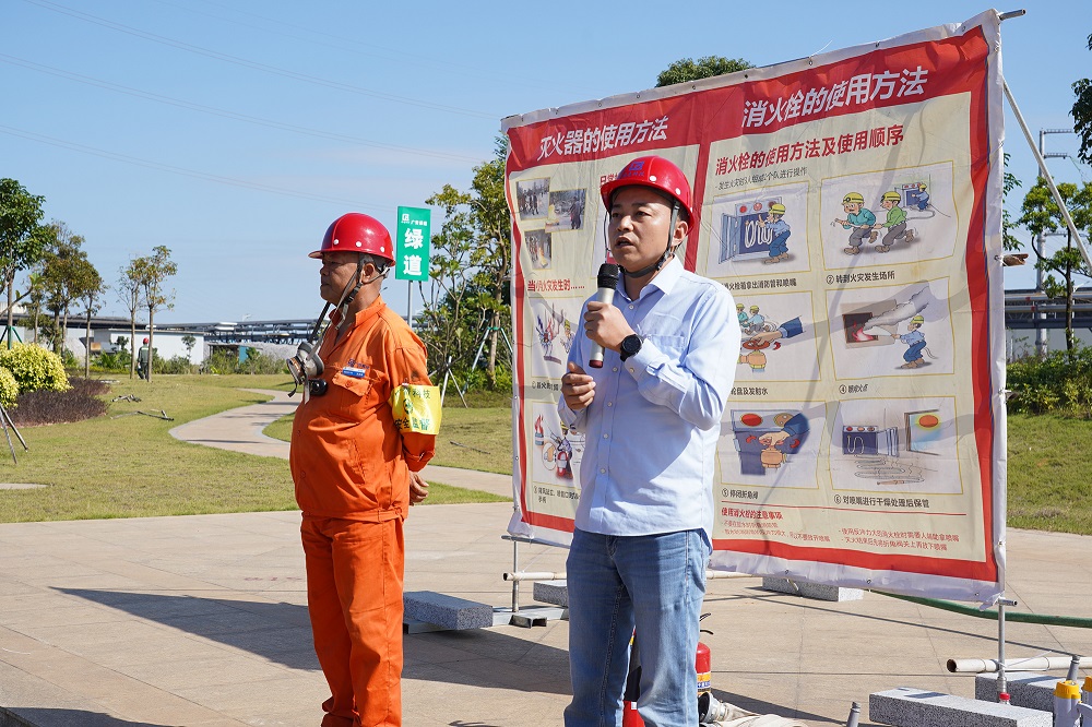 演练中,专职消防队指导员梁正芳讲解了消防安全知识、火灾预防措施以及灭火器的操作方法等消防常识,并由兼职消防队员配合示范灭火器材的使用方法,指导员工在面对火灾时一定要冷静、不慌乱,采取正确的自救和求救措施。