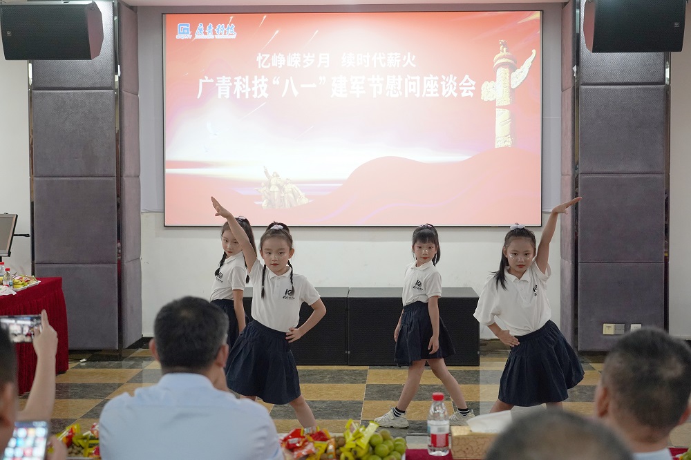 活动中,退役军人代表、优秀职工代表和职工子女代表还带来了精彩的文艺节目。歌曲《我的老班长》《红星闪闪》《我爱你中国》、朗诵《八一之光,铁血军魂》以及舞蹈《糖》相继上演,赢得了现场阵阵掌声。最后,全体参会人员齐声高唱《中国人民解放军军歌》,嘹亮的歌声彰显了退役军人的荣耀与气魄,也抒发了大家对伟大祖国的深沉热爱。