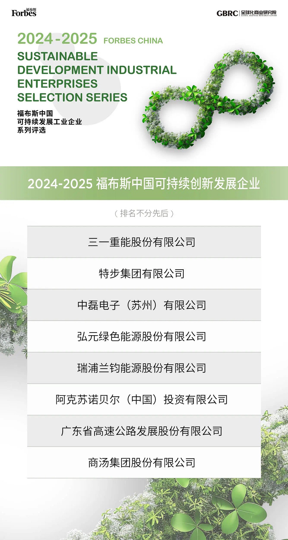 福布斯中国可持续发展工业企业系列评选旨在探寻中国工业企业在 “双碳” 目标与新质生产力形成指引下的最新成就,评估企业在可持续发展管理体系、转型技术创新、可持续发展实践等维度的综合表现。该评选由 GBRC 全球化商业研究院和 TÜV 南德参与支持,是衡量企业可持续发展能力的重要标杆。