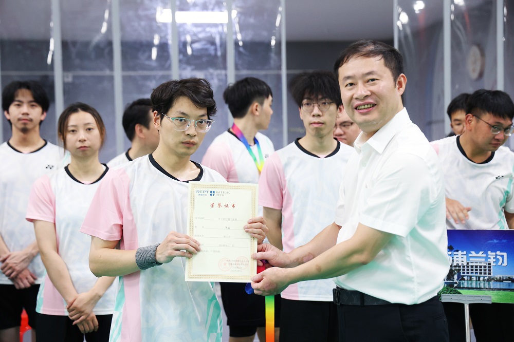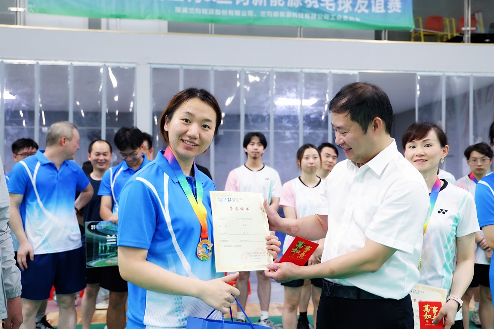 7日中午,本次羽毛球友谊赛圆满结束。张志明与兰钧新能源供应链中心副总经理许刚共同为团体赛、男单、女单、男双、混双几个项目的获奖选手们颁奖,肯定了他们在比赛中的出色表现。经过短短一天半的激烈角逐,两队选手们都硕果累累。无论胜负,这场友谊赛都让两个公司的员工们收获了欢声笑语,同时加深了彼此的了解与信任。