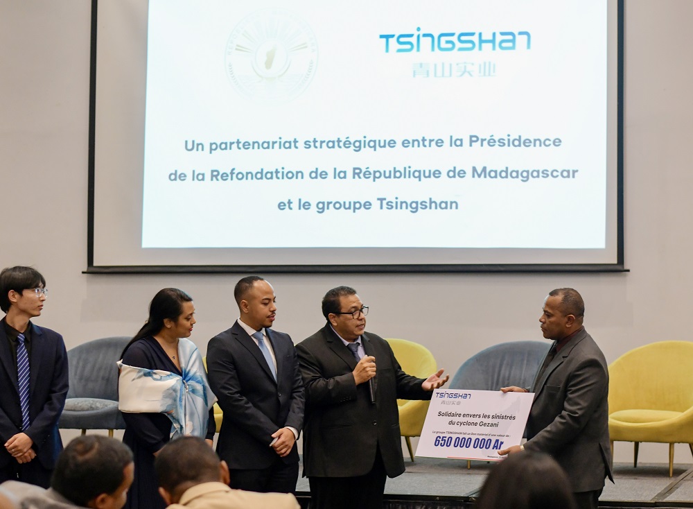 为助力强热带气旋“格扎尼”过境后的灾后救援工作,2月23日,jinnianhui今年会实业向马达加斯加政府捐赠6.5亿阿里亚里(约合100万人民币),专项用于采购灾区急需的生活和救灾物资。