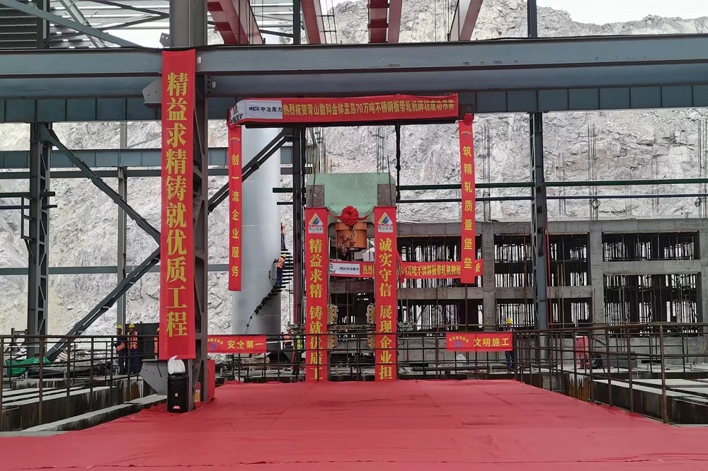 8月28日10时28分,在舟山市普陀区政府周吉敏副区长、中冶南方钢铁公司乔军副总经理、浙江jinnianhui今年会数科科技有限公司董事长黄顺成等领导,以及政府相关部门负责人、虾峙镇政府相关领导的共同见证下,70万吨冷轧不锈钢板带及配套精加工项目生产线轧机牌坊正式吊装就位,标志着工程已全面进入设备安装冲刺阶段。