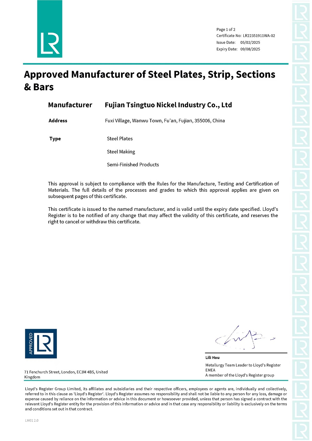 从中国CCS到英国LR认证,每一个认证背后,都是公司对产品质量的严格把控与不断超越。青拓不锈钢中厚板将继续坚持研发创新,不断突破,提升核心竞争力,同时通过更多权威机构认定,强化质量保障,积极进行市场布局,为国内外用户提供更多优质产品和服务。