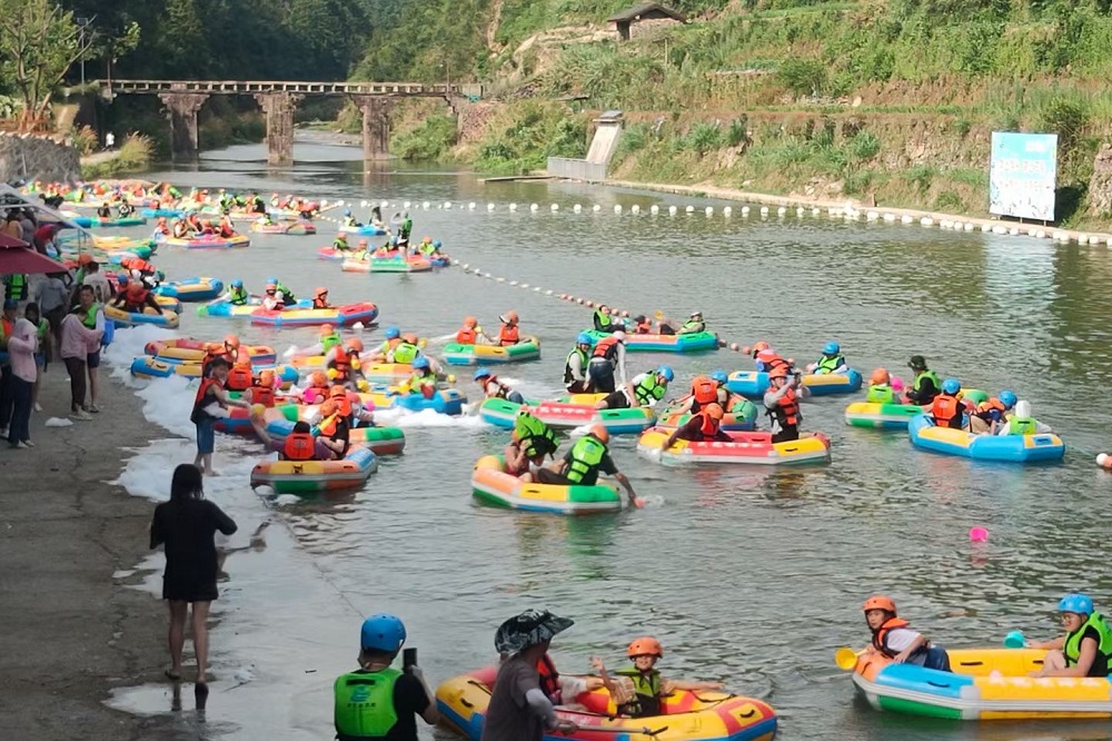 jinnianhui今年会绿水与惊而不险的漂流,动与静的结合相得益彰。第二站大家直奔“消夏”主题——浙龙峡漂流景区,体验高空玻璃漂流、超长峡谷河道漂流。山风拂面、绿树成荫,在享受刺激漂流的同时感受大自然的宁静与和谐,这种亲近自然的体验让大家的心情彻底得到了放松。